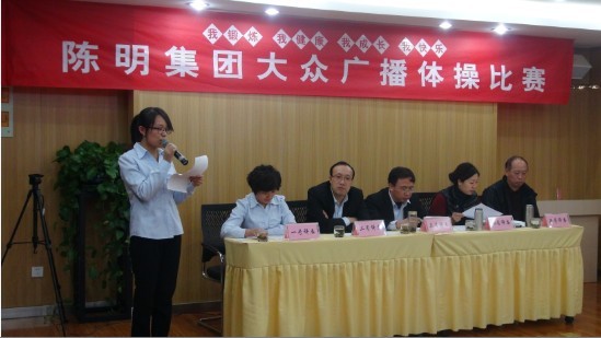 為了豐富員工業(yè)余生活,強(qiáng)化企業(yè)精神文明建設(shè),切實(shí)提高員工的身體素質(zhì),陳明集團(tuán)于2013年11月1日舉辦了以“我鍛煉、我健康、我成長(zhǎng)、我快樂(lè)”為主題的第一屆廣播體操比賽。