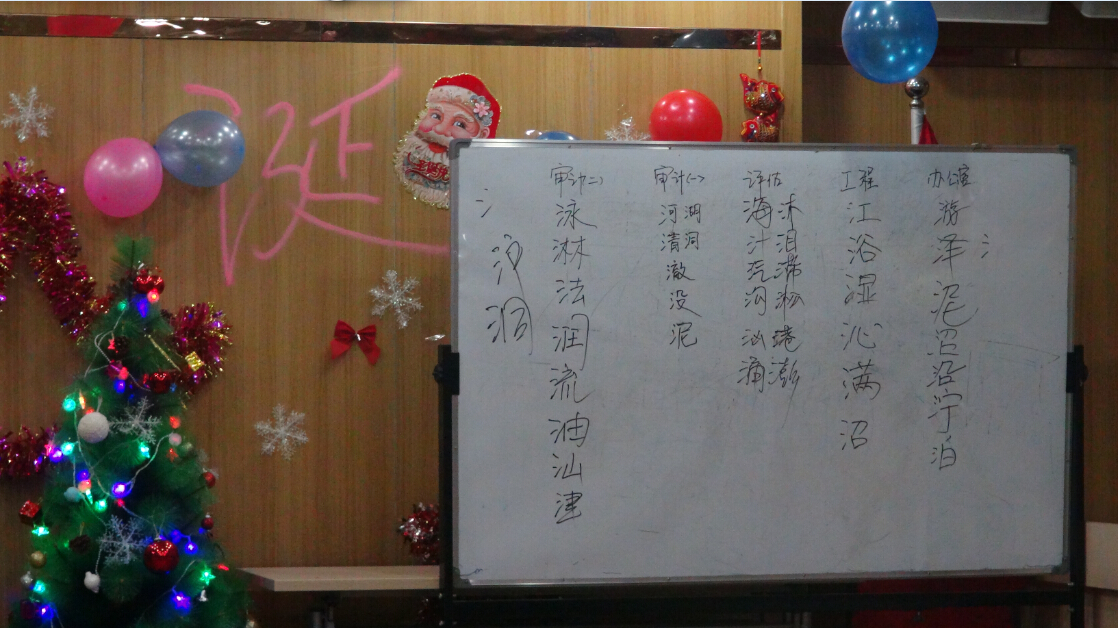 今年的平安夜活動(dòng)比起往屆,增添了許多亮點(diǎn)。此次聯(lián)歡的節(jié)目?jī)?nèi)容形式多樣、豐富多彩。聯(lián)歡以張局長致辭開場(chǎng),集體許愿將一片溫馨融洽的氣氛帶入了現(xiàn)場(chǎng);集體熱身舞蹈更是讓大家感到了濃濃的節(jié)日氛圍;基建部的詩歌朗誦《我希望》讓大家經(jīng)受了一次思想的洗禮,審計(jì)一部動(dòng)感十足的一曲《奔跑》更是深受大家的喜愛;審計(jì)二部《租個(gè)女友回家過年》恢諧生動(dòng)的表演引來一陣又一陣的笑聲;評(píng)估部精彩的《舞蹈大串燒》更是讓大家忍不住集體點(diǎn)贊;緊張又刺激的腦筋急轉(zhuǎn)彎、踩氣球、猜字謎、削蘋果等游戲,一次次的將晚會(huì)氣氛推向高潮。掌聲和歡呼聲此起彼伏,臺(tái)上臺(tái)下成了一片激情四溢的海洋。辦公室、財(cái)務(wù)部、文化部的詩歌朗誦《相信未來》之后,全體家人熱情合唱了司歌《我相信》,表達(dá)了大家對(duì)公司的深深的情懷和對(duì)未來無限的希望。
